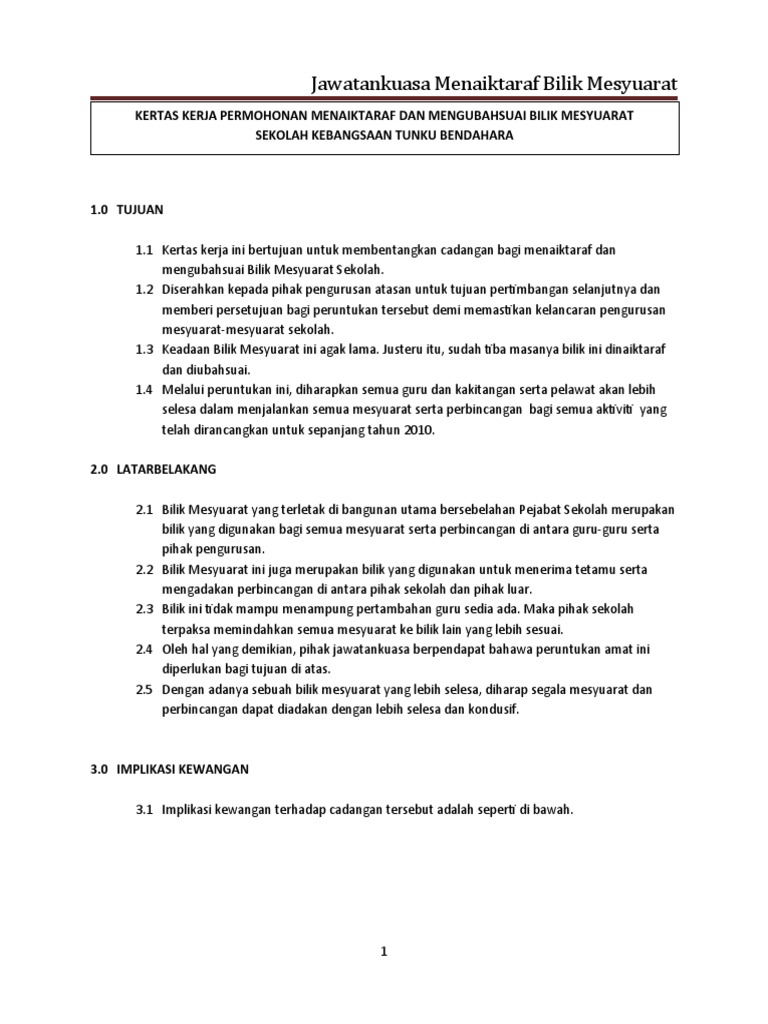 Format Kertas Kerja Peruntukan Bantuan Khas Perbendaharaan Kpwkm Terkini 2014 from imgv2-2-f.scribdassets.com Merupakan alat bagi atasan untuk mereview dan. Kertas kerja seminar ialah kertas kerja tentang sesuatu perkara untuk dikemukakan kepada sesebuah kumpulan atau orang ramai dalam sesuatu bengkel atau seminar. Contoh kertas kerja permohonan peruntukan contoh grow mp3 & mp4. Contoh kertas kerja pembelian barang. Merupakan dasar penyususun laporan hasil pemeriksaan. Kertas kerja mohon peruntukan pertandingan tarian 1. Kertas kerja merupakan satu rencana yang mengandungi perbincangan mengenai sesuatu persoalan dan cadangan tertentu. Bagi anda yang ingin mendapatkan kelulusan bagi peruntukan kewangan ataupun menjalankan sesuatu projek, anda boleh sediakan kertas kerja bagi projek anda seperti.